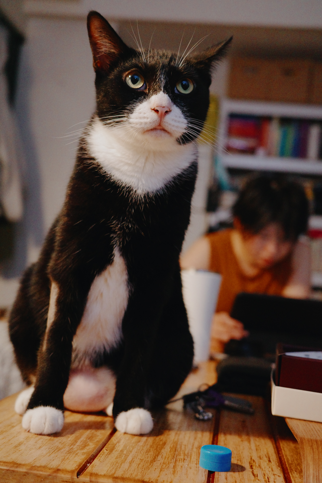 在家裡拍貓,光線、快門、對焦速度缺一不可;光線的部分,白天有自然光,到了晚上通常就是拉高感光度拍攝,ISO4000~ISO6000自動ISO浮動,我看了GRIIIx直出JPEG的照片,躁點雜訊的控制還蠻好的;快門的控制部分,晚上如果光線不足,通常會保持在1/80秒~1/125秒之間,對於貓咪翻來翻去還是可以拍得清楚;對焦部分,就會採用GRIIIx螢幕觸碰直接拍攝,是快速又方便來抓拍貓咪可愛模樣的方式。