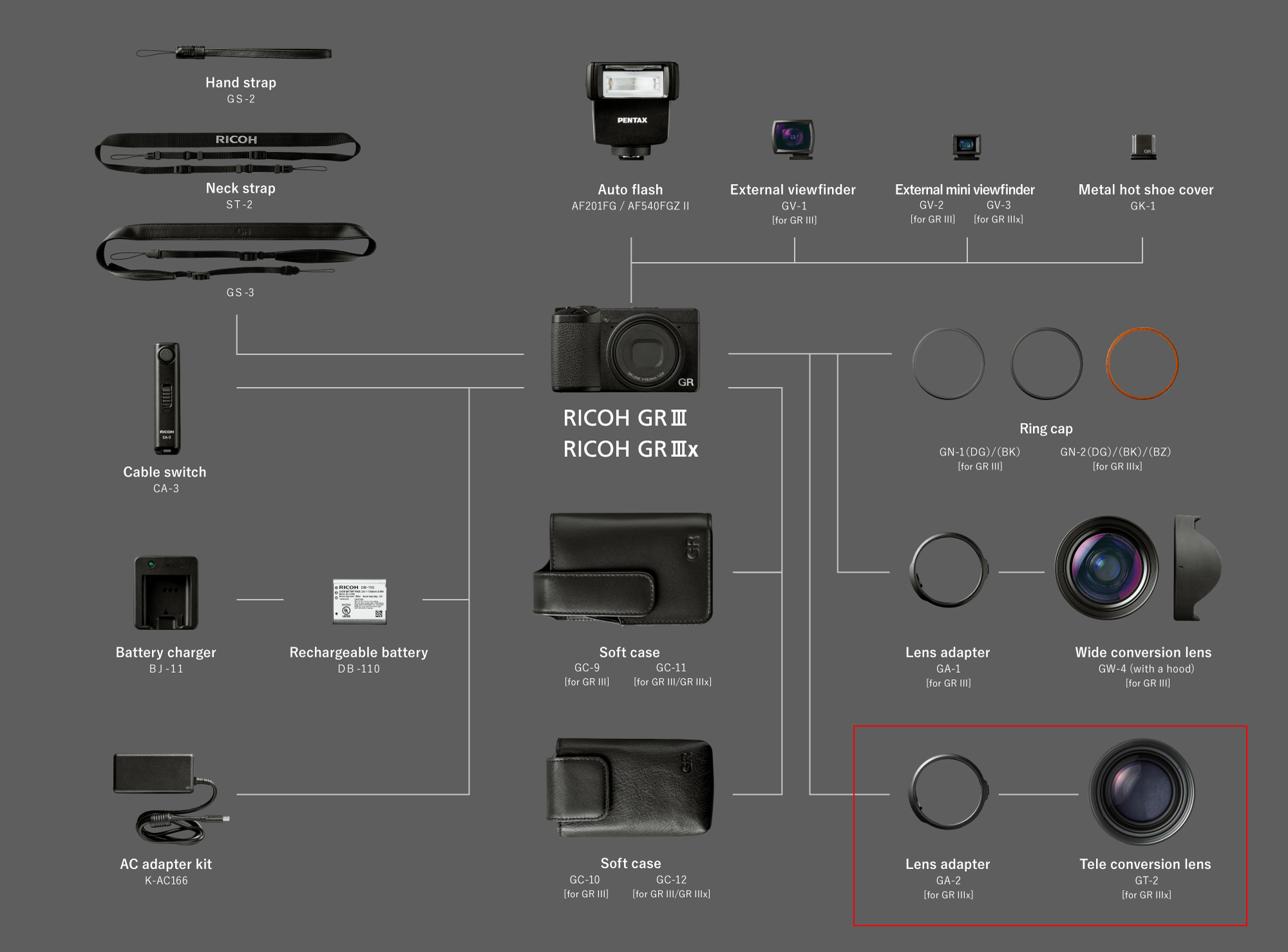 GR3、GR3x 的配件地圖,紅框的選區就是 GR3x 專屬的配件。