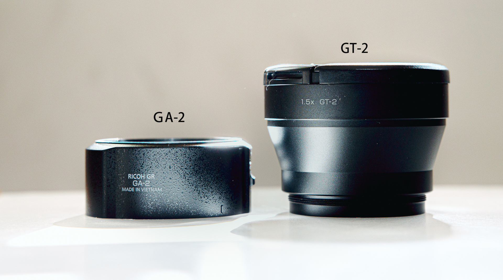 GR3x 要裝上兩個配件,一個是轉接環 GA-2(轉接口徑是 φ49mm),另一個是望遠鏡頭 GT-2,才能夠組合在一起。